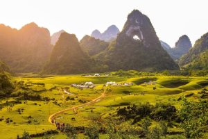 Me Pja Pass is located in Cao Bang Province, near the border between Vietnam and China. It is also known as the “14-storey pass”, Me Pia Pass, or Khau Coc Cha Pass. Although the pass is only about 2.5 kilometers long, it is winding and divided into 14 steep turns. Despite its challenging terrain, once you make it to the top of the pass, the breathtaking scenery of the region will leave you in awe.